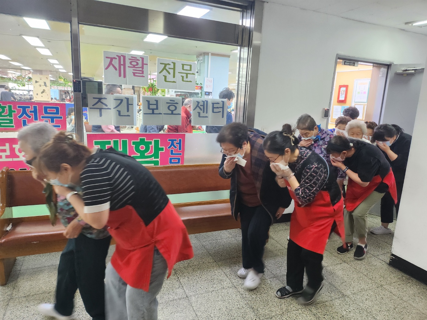 2025년 상반기에 불시에 닥쳐오는 재난 발생으로 화재에 대비하여 어르신과 직원을 대상으로 자체적으로 소방대피모의훈련으로 실시하였습니다.재난대피훈련 시나리오 대로 연출이 되었으며 어르신과 직원들이 각각의 대처 방법을 다시 되새기며 대피 훈련을 하였고 신규 입소한 어르신들에게는 새로운 경험이 되었습니다.화재시 대피 절차를 설명하고 그대로 시연하여 신속하게 질서를 지키며 대피하는 방법을 배웠습니다. 소화 진압반은 초기에 불을 끄는 연습을 했고 대피 유도반은 조를 짜서 인솔 요양보호사가 선두로 어르신 한 분에 직원 한 사람이 직접 케어 하며 안전을 위한 대피 훈련을 안전하게 마쳤습니다. |